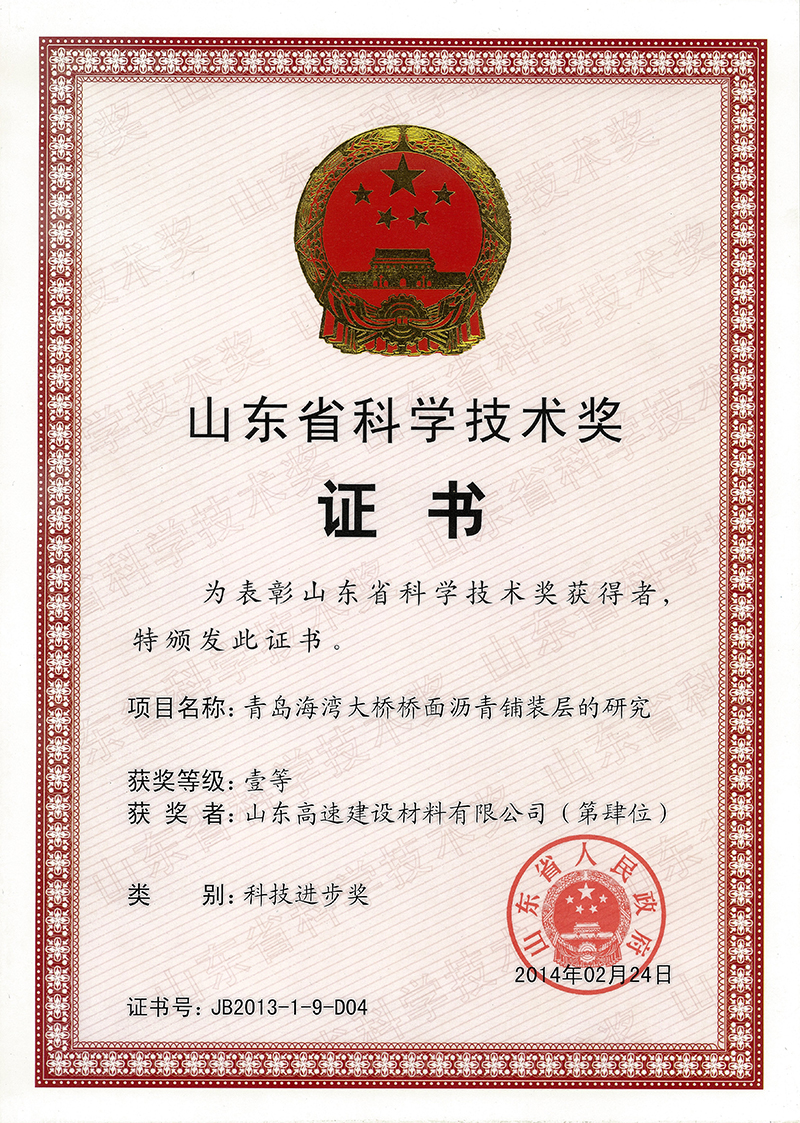 2014年山东省科学技术奖