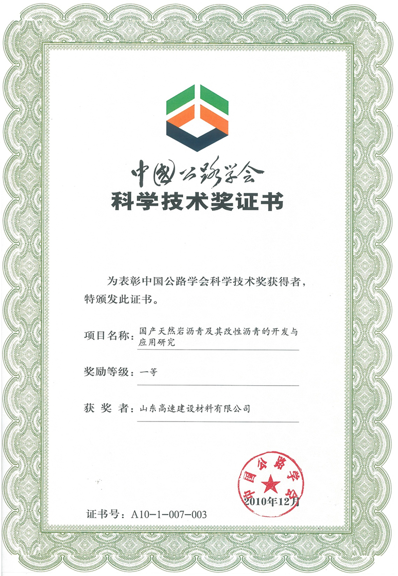 2010年中国公路学会科学技术奖