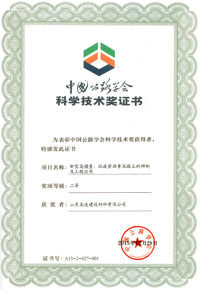 2015年中国公路学会科学技术奖